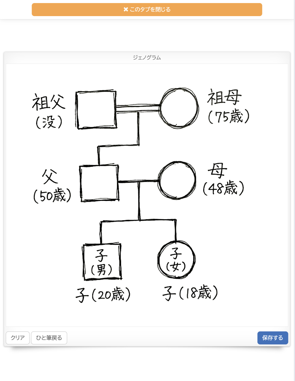 [ ユーザー管理 ] ページにて、利用者様情報に付加する形で、手書きのジェノグラムを追加する、ということも可能です。